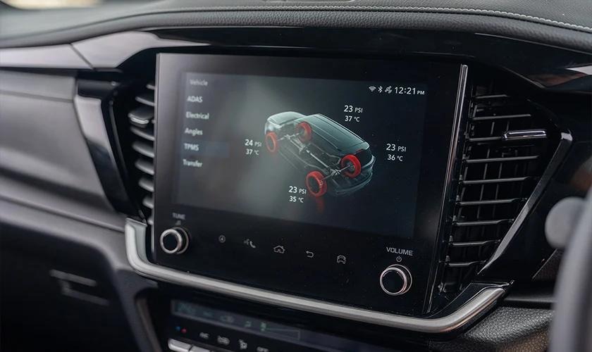 Having the right tyre pressure is essential when towing. The Tyre Pressure Monitoring System (TPMS) constantly monitors individual tyre pressures, helping ensure that safe tyre pressures are maintained for optimal fuel efficiency and to help reduce tyre wear. TPMS also helps when inflating tyres as it beeps when you have reached the correct tyre pressure.